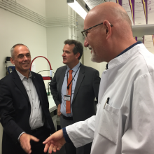 Our laboratory received today the visit of the Chief Executive Officer of CNRS, Dr. Antoine Petit. He was accompanied by Dr. Younis Hermes, Regional Delegate of CNRS in New Aquitaine and Dr. Jean-Yves Marzin, Director of INSIS CNRS.